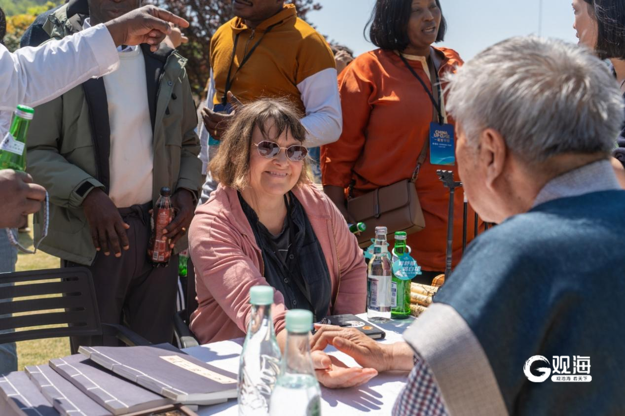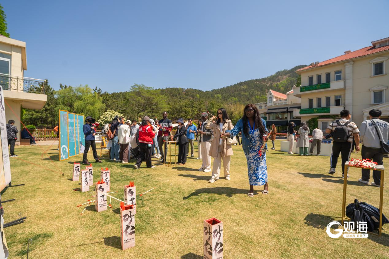 随后,媒体团成员们来到华东百利酒庄大草坪,现场品鉴了崂山矿泉水、崂山白花蛇草水、崂山可乐等特色产品,并体验了中医、剪纸、书法、投壶等中国传统文化与游戏。