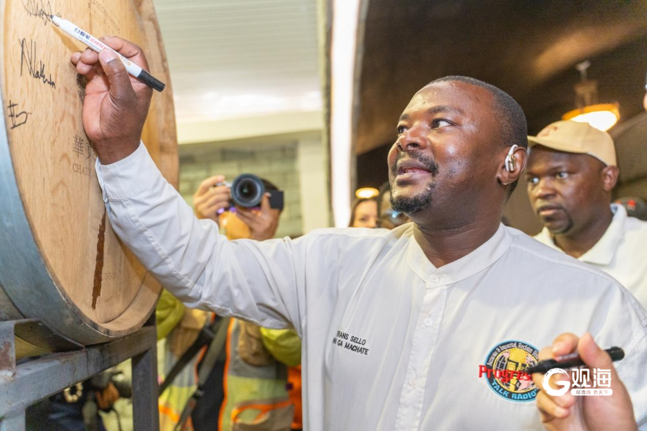 在工作人员的带领下,媒体团来到华东葡萄酒大酒窖。这里不仅存放着1985自酒庄年成立以来每年生产的葡萄酒,还有播放着摇篮曲。超大的橡木桶吸引来自全世界的媒体人纷纷签名留念。