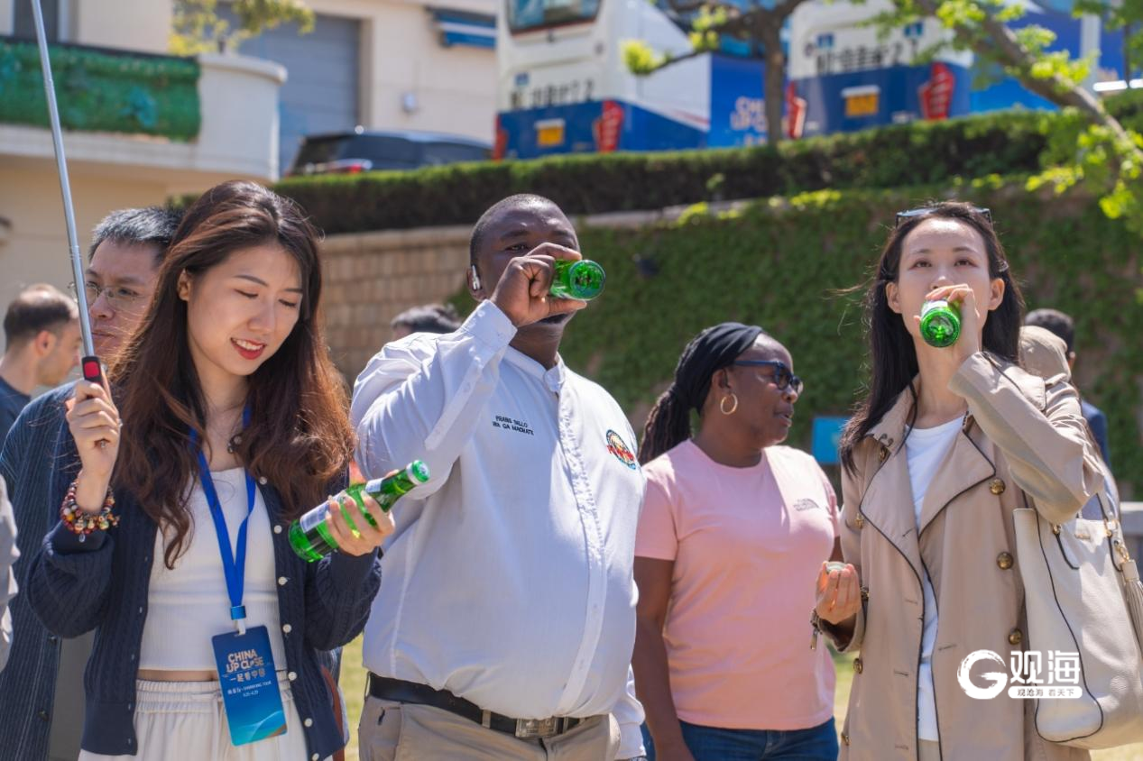 有着“青岛神水”之称的崂山白花蛇草水吸引了媒体团成员的注意力。来自南非的媒体人品尝到崂山白花蛇草水后感到万分惊喜,“在我们国家人们经常喝苏打水,这个崂山白花蛇草水非常有中国特色,口味我也非常喜欢,听说这里面有中草药,真是太神奇了!”
