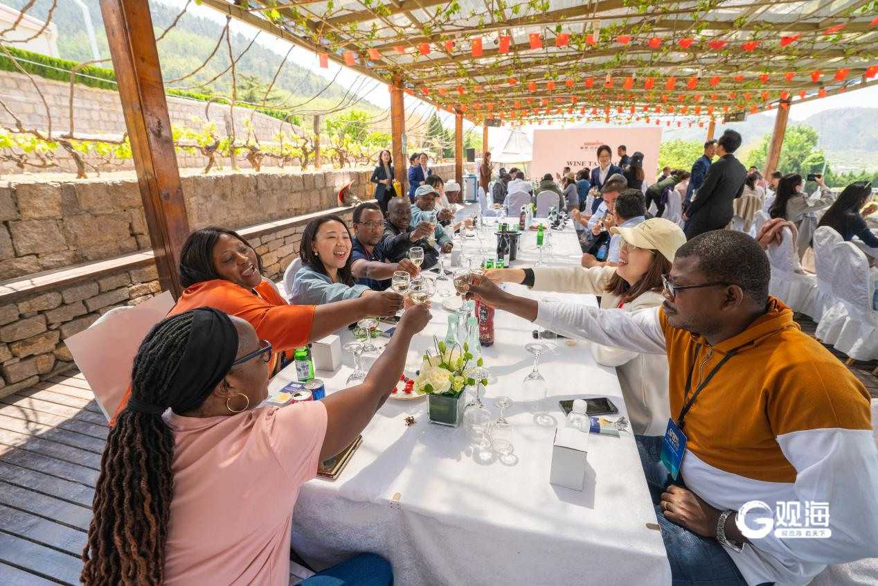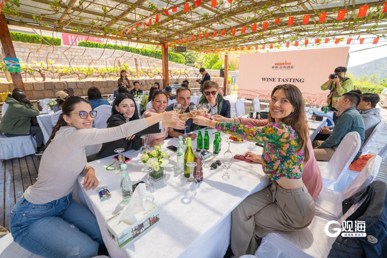 青岛日报社/观海新闻4月28日讯 4月28日,一场别开生面的全球媒体创新论坛(以下简称CMG论坛)记者走读活动在华东百利酒庄举办。来自全世界数十个国家和地区的七十多名记者齐聚于此,品鉴崂山白花蛇草水、崂山可乐、华东干白葡萄酒等青岛味道,了解中国传统文化以及中国本土饮料及葡萄酒的发展历史。