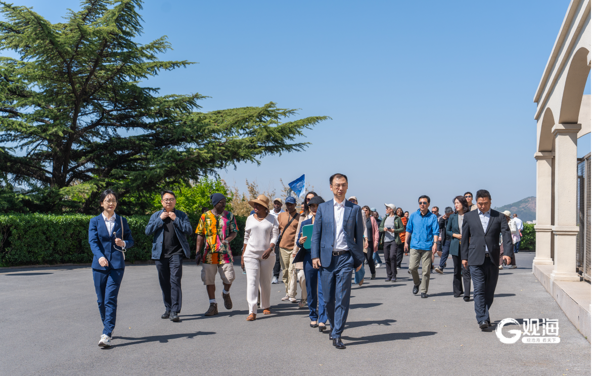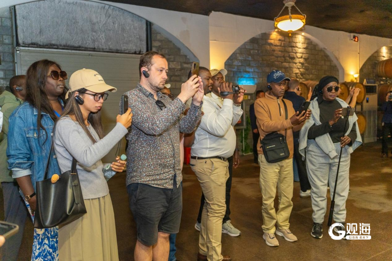 上午,CMG记者媒体团抵达华东百利酒庄,一行人首先来到酒庄大草坪处,俯揽青岛城市全貌。远处是青岛时尚的城市天际线,近处是壮阔的崂山山脉,现代与自然恰到好处的结合让来自全世界的媒体人纷纷点赞。